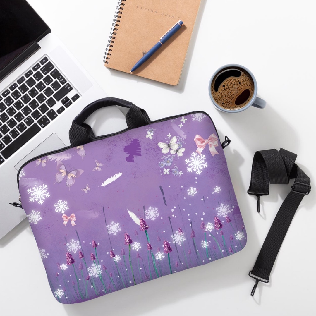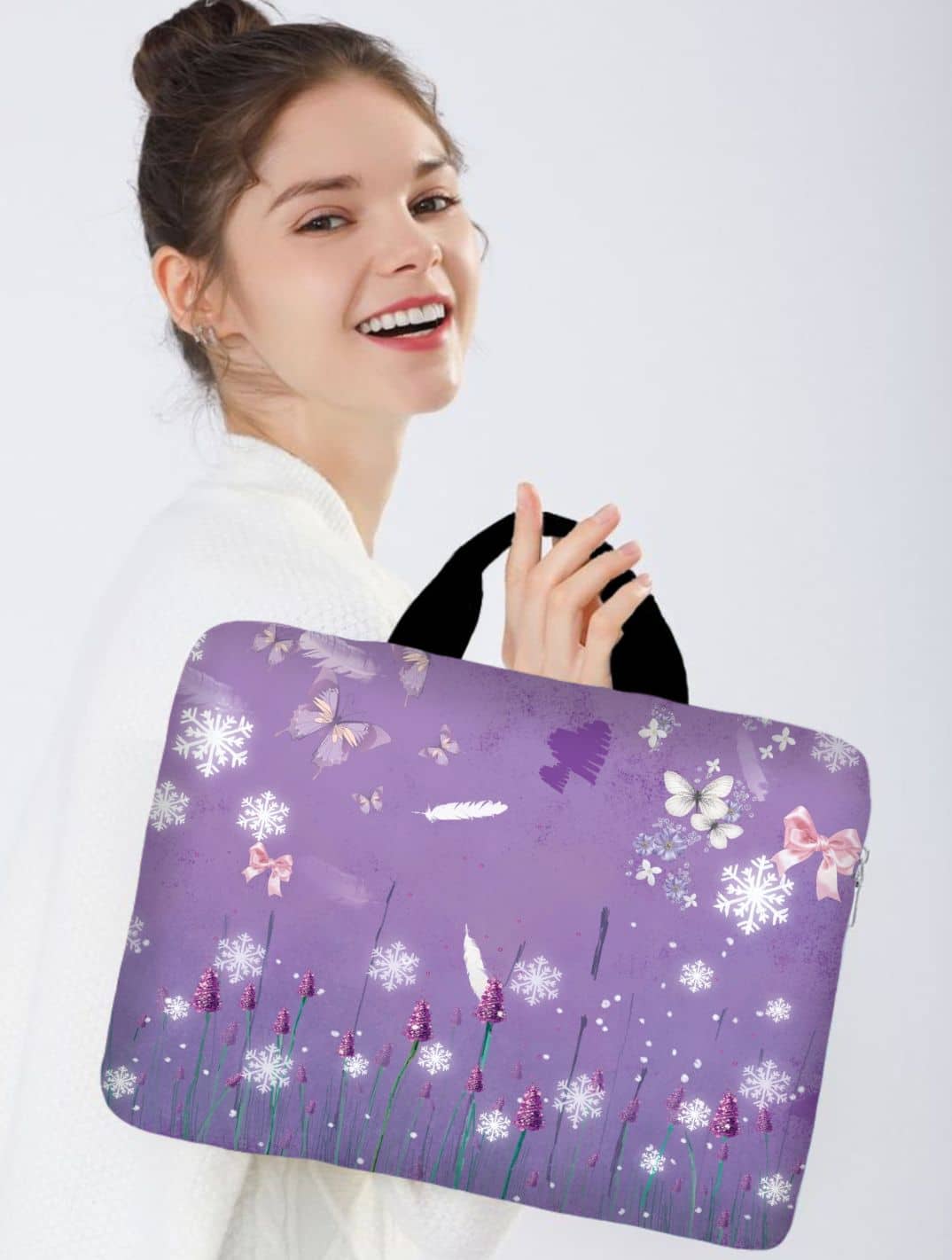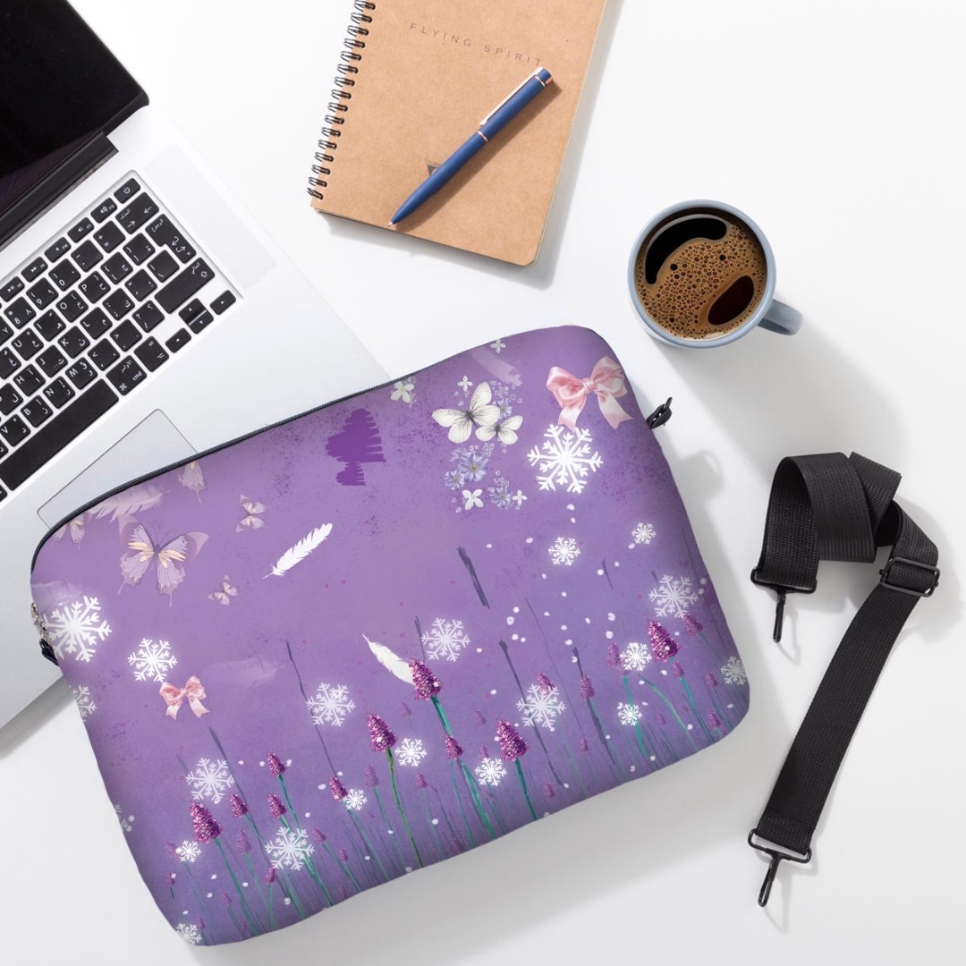 حافظة لابتوب بتصميم الثلج والفراشات باللون الافندر