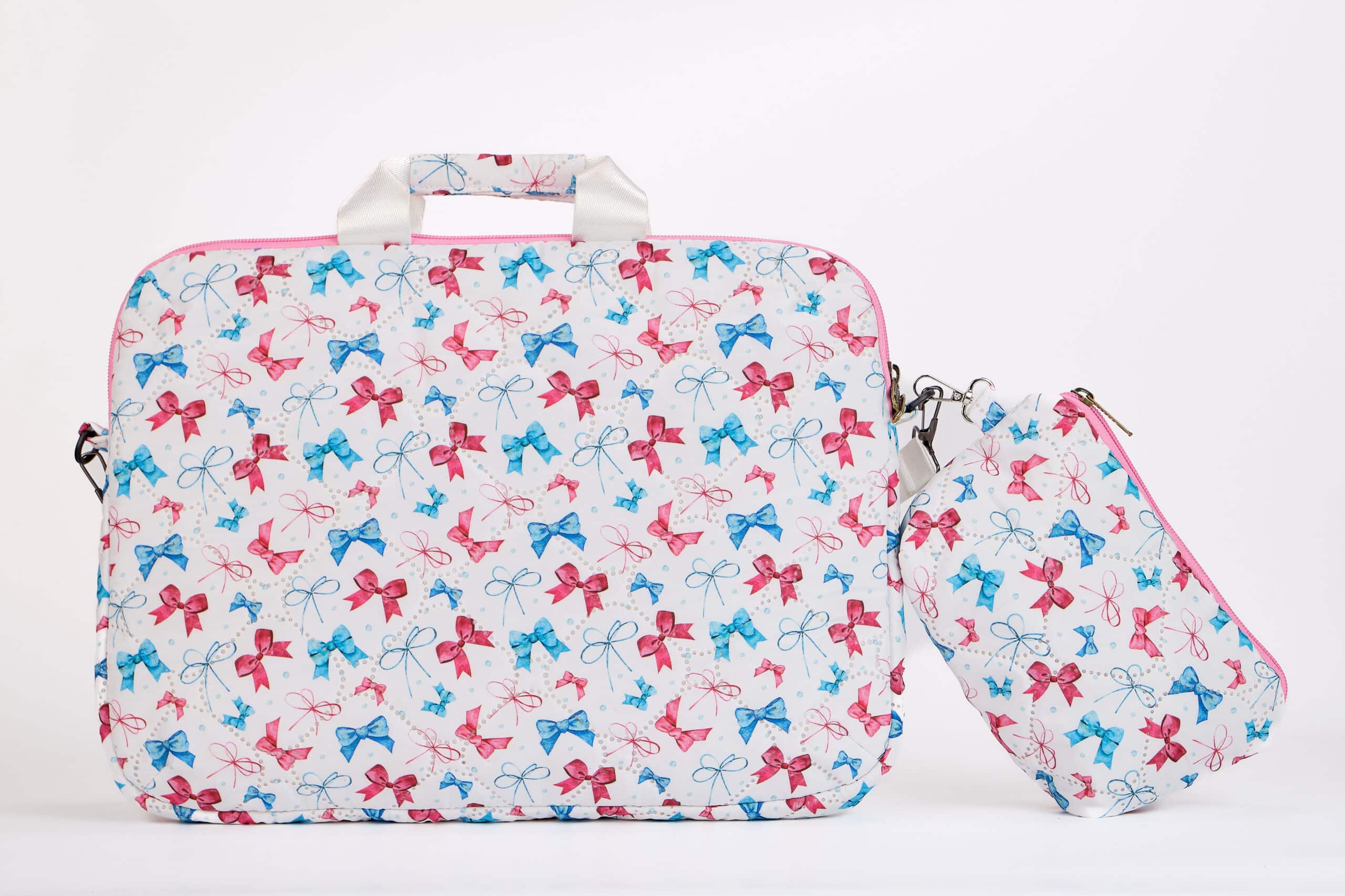 حافظة لابتوب بتصميم فيونكات بينك مع أزرق